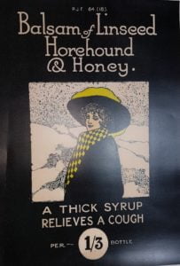 This lovely old advert for “Balsam of Linseed, Horehound and Honey” cough medicine has found its way onto the Flax Farm office wall. It is quite timely as being a late November people are starting to get tiresome coughs.
