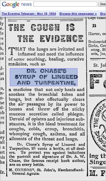 - Dr Chase’s Syrup of Linseed and Turpentine the Evening Telegram St John’s Newfoundland (circa 1945)